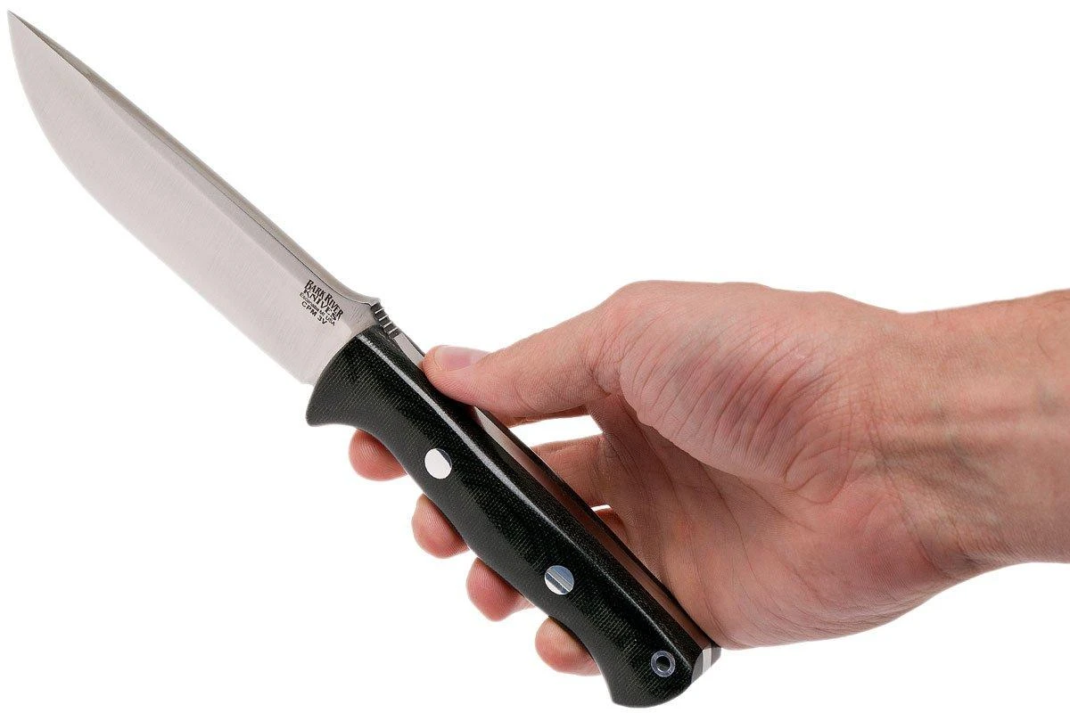 Le Bark River Bravo 1.2 est conçu pour un usage (para)militaire, en particulier pour le corps des marines amĂ©ricains. Il est cependant vite devenu Ă©vident que ce couteau a beaucoup plus Ă offrir. Pendant ce temps, le Bravo 1 est un couteau populaire Ă la fois chez les bushcrafters et les chasseurs. Il est solidement construit avec une Ă©paisseur de lame suffisante pour une utilisation ferme. Parfait pour le travail du bois, la prĂ©paration du gibier et de nombreuses autres tâches extĂ©rieures. C’est le plus long frère du Bravo 1 original. La lame du 1.2 est juste un peu plus longue et se rapproche de la longueur du Bravo 1.25. Le Bravo 1.2 a Ă©tĂ© conçu Ă la demande du marchĂ© allemand car il est autorisĂ© de porter un couteau Ă lame fixe avec une longueur de lame jusqu’Ă 12 cm. Le Bravo 1.2 a une lame d’exactement 11,9 cm. de long et peut donc ĂŞtre portĂ© en public en Allemagne (si les circonstances le permettent). La longueur de la lame est la seule diffĂ©rence avec le Bravo 1, le manche est exactement le mĂŞme.